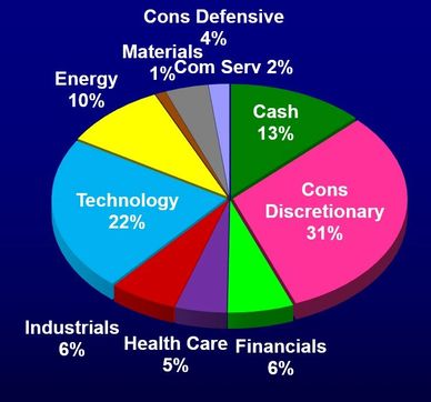 Spreading your investments across different sectors helps to reduce risk. We currently avoid Utilities and Real Estate because we see better opportunities elsewhere. Thirteen percent of our portfolio is now in cash, and we are seeking the right stock and optimal entry point.
